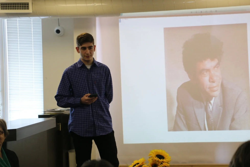 12-րդ դասարանի աշակերտ Դավիթ Անանյանը Պարույր Սևակին նվիրված դաս էր ծրագրել: Նա դասին հրավիրել էր նաև իր սիրելի տատիկին՝ գրքասեր, Սևակին պաշտող Ամալյա Վարդանյանին, որին ուղեկցում էր Դավիթի մայրիկը՝ Լիլիթ Անանյանը:
