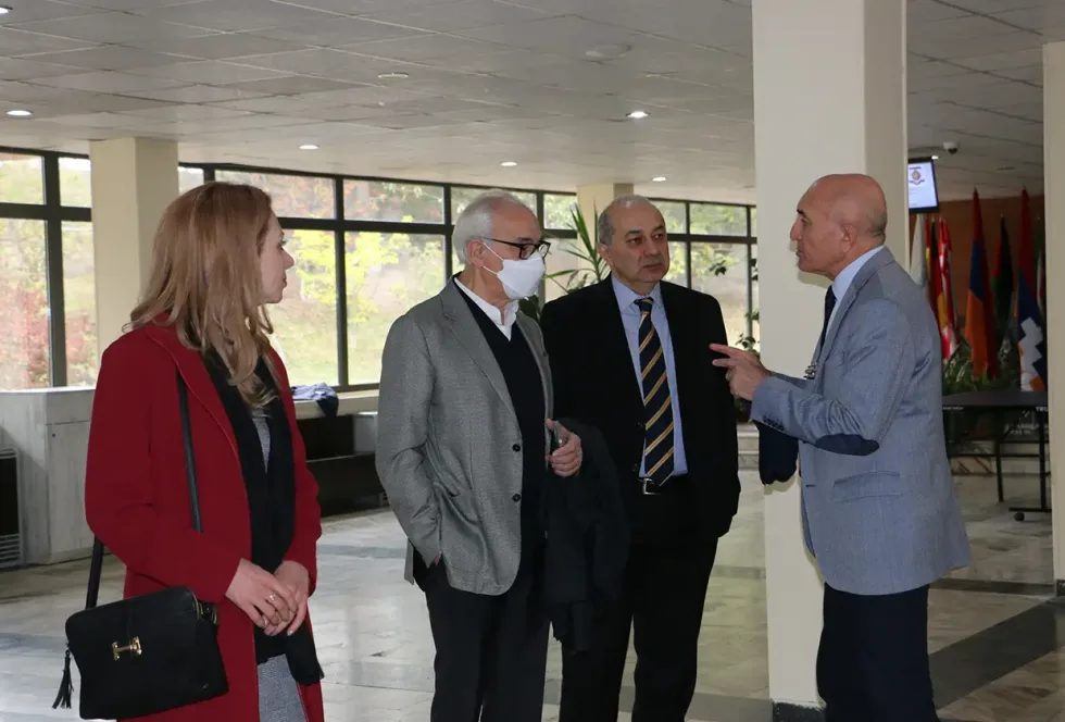 Ճեմարանում շրջայցից հետո հյուրերը հանդիպեցին ճեմարանական համայնքի ներկայացուցիչների հետ՝ ծանոթանալու Ցեղասպանության դասավանդման ճեմարանական փորձին: