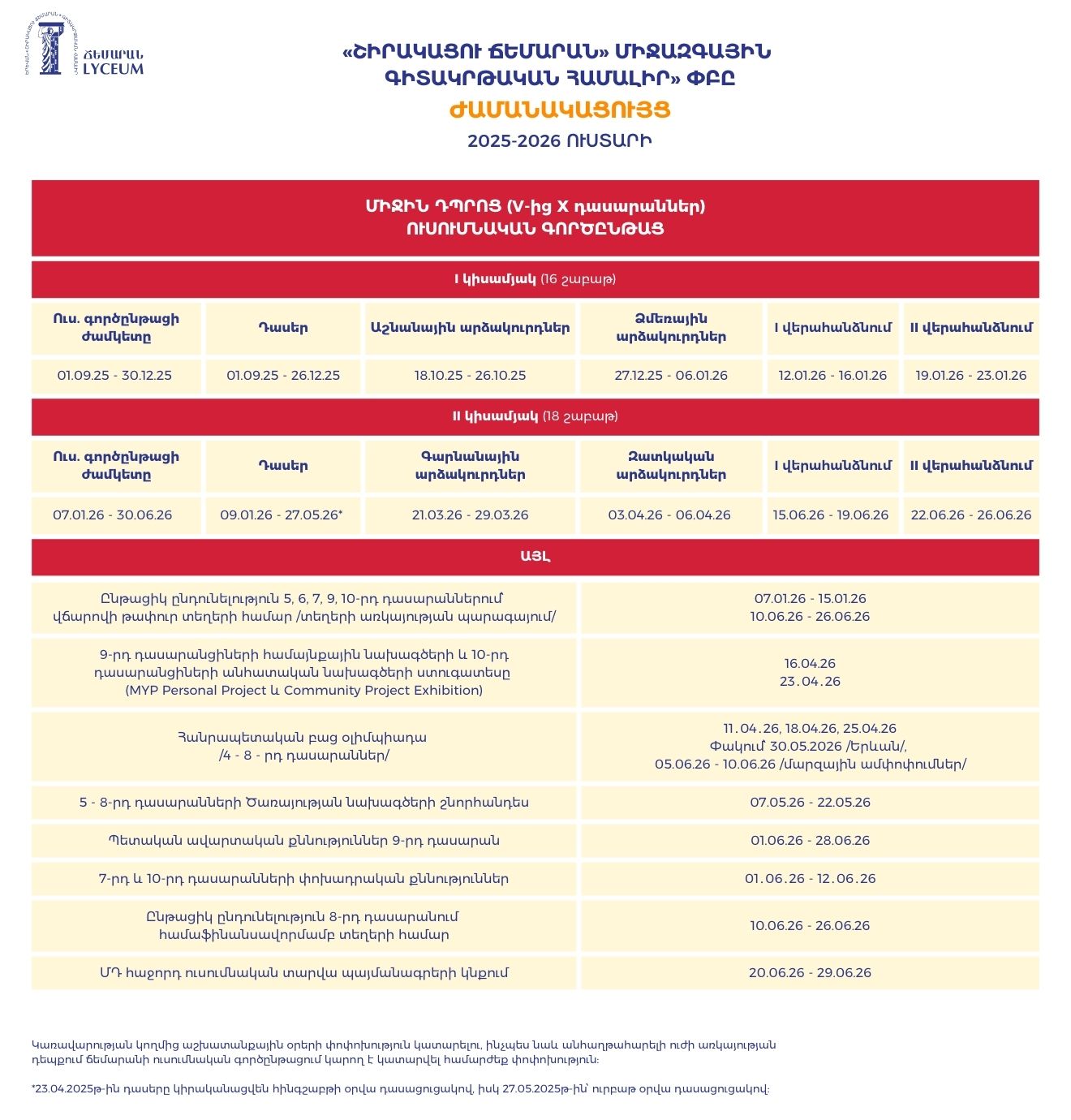 - Ժամանակացույց 2025-2026